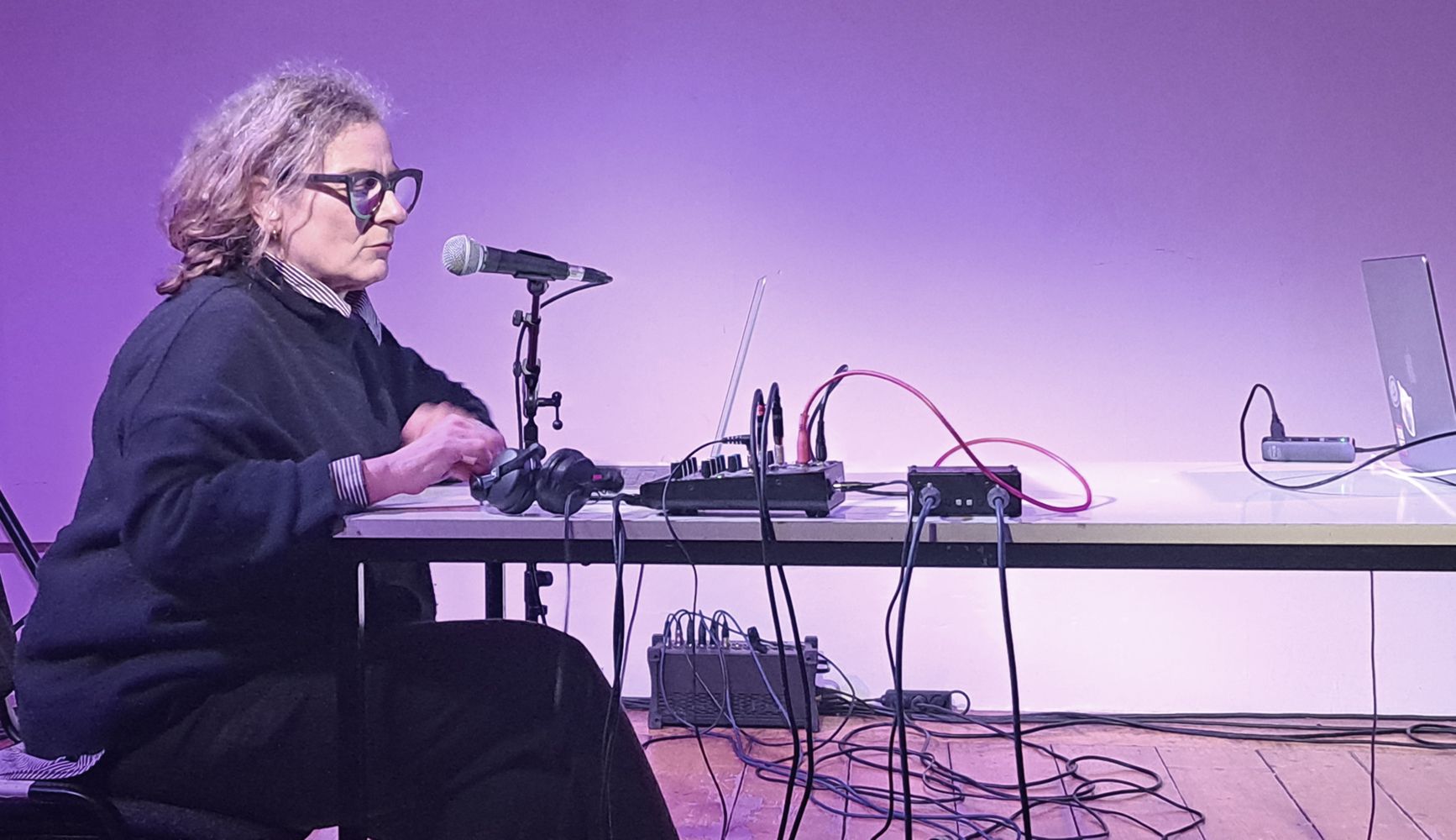 O-Research is Ricarda Denzer's approach to ‘O’. Like a ceaseless back and forth, a mysterious object ‘O’, Wilfrid Bion describes access to “O” as resonance, not cognitive appropriation. ‘O’ always remains the same and yet is constantly changing. Para-listening, as the artist calls her listening process, is a practice in which listening – also as a method of auditory research – is ‘[...] an intensification and an occupation, a curiosity or a disturbance’. Listening here means ‘being curious about a possible meaning’; it is unimaginable, chaotic, formless and infinite.